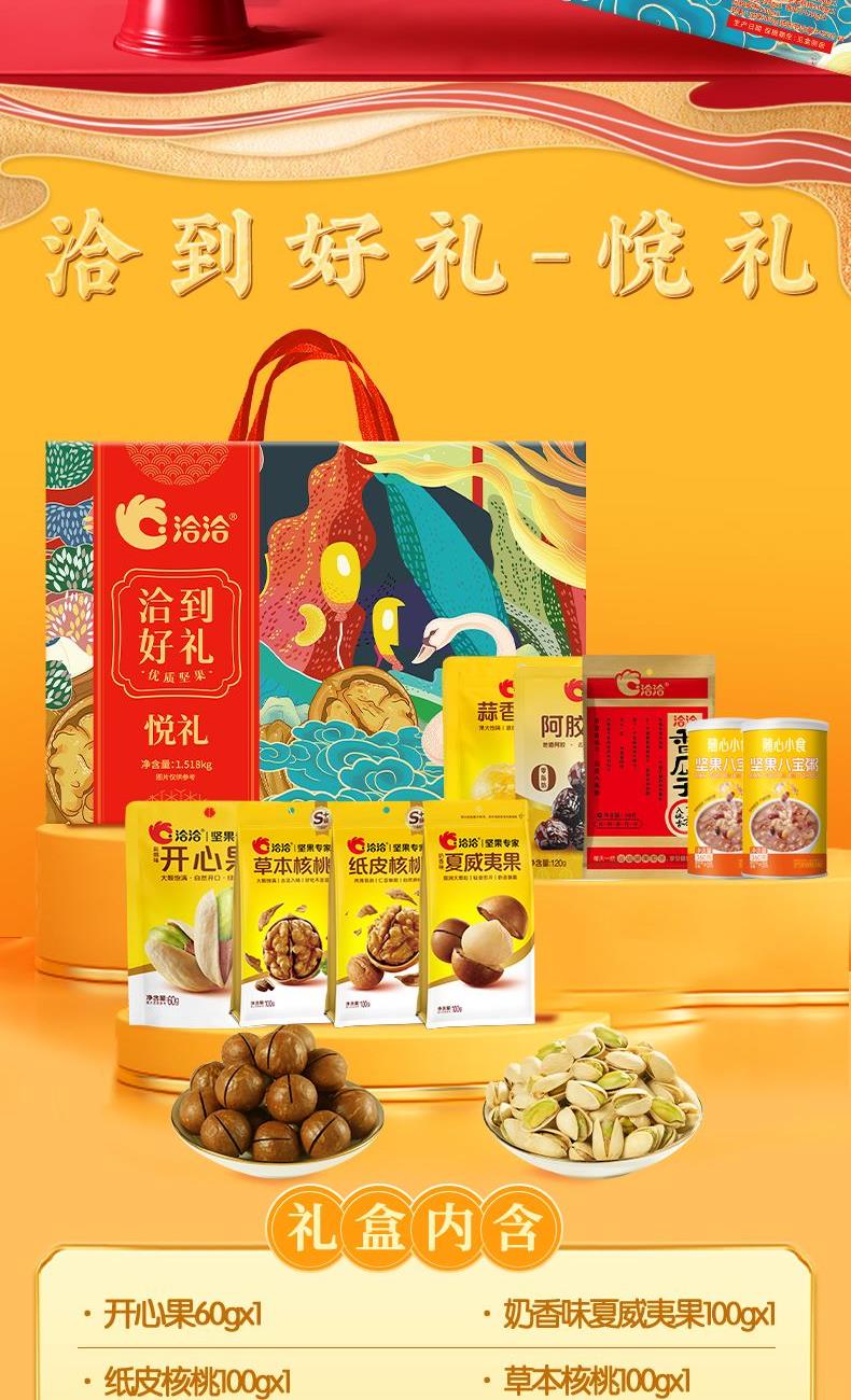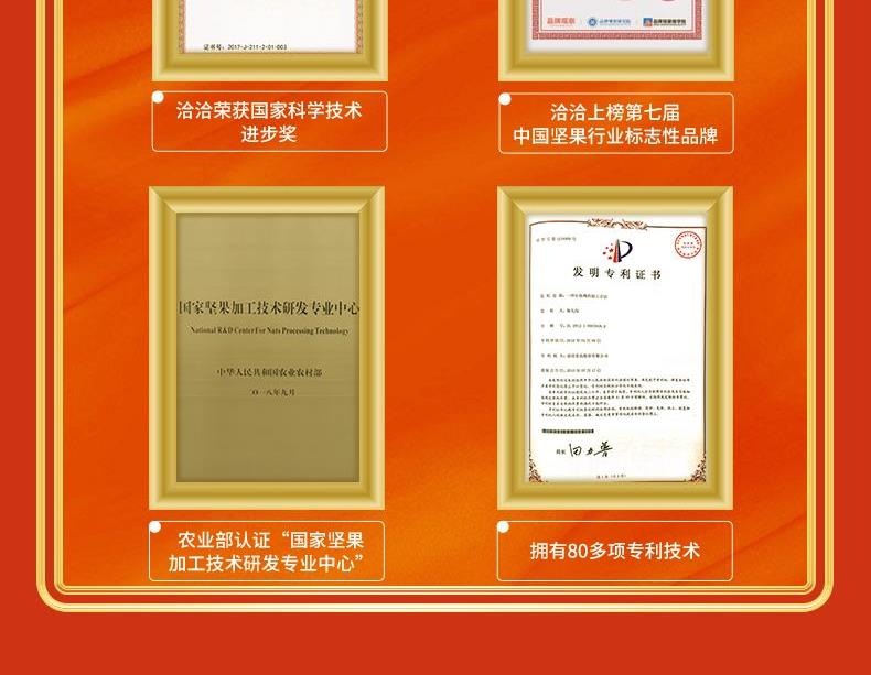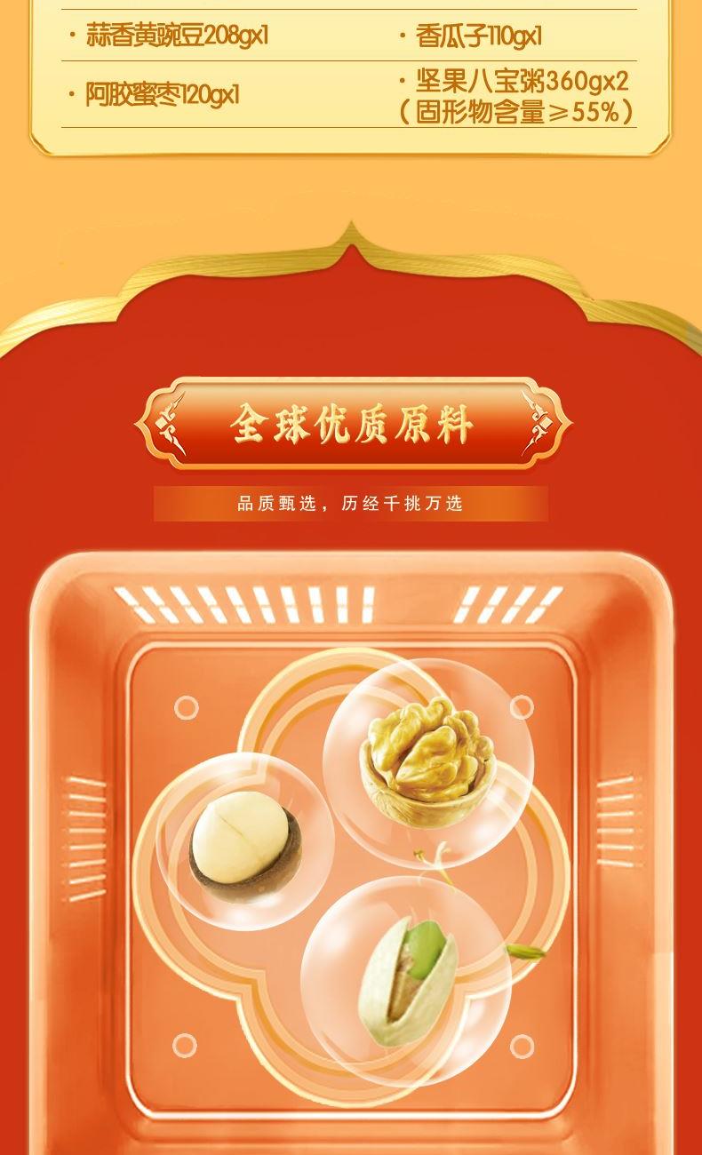 【洽洽】开心果60g 【洽洽】夏威夷果100g 【洽洽】纸皮核桃100g 【洽洽】草本核桃100g 【洽洽】蒜香豌豆208g 【洽洽】香瓜子110g 【洽洽】阿胶蜜枣120g 【洽洽】坚果八宝粥360g 【洽洽】坚果八宝粥360g 名物礼盒:410*290*120mm